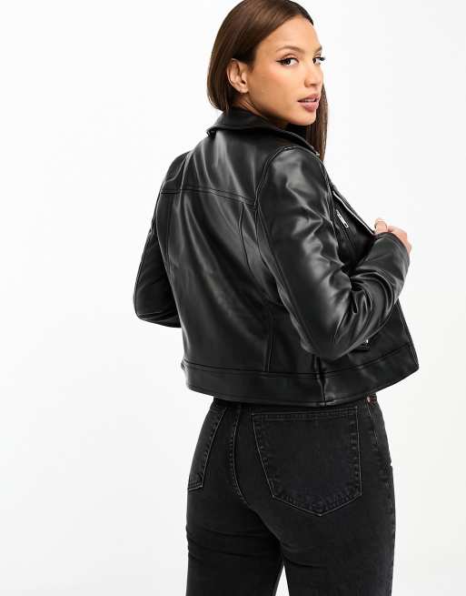 ASOS DESIGN Tall ultimate faux leather biker jacket in black Very well made.